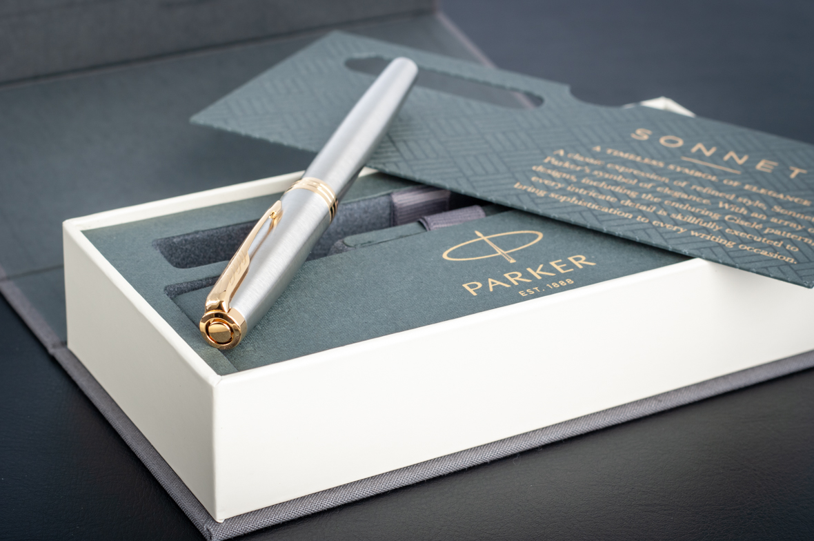 Ручка роллер Parker Sonnet Stainless Steel GT от официального дилера Parker в Твери. Вы можете дополнительно заказать гравировку, которая подчеркнет Вашу оригинальность и придаст памятность статусному подарку. Все ручки Паркер поставляются в фирменном футляре.